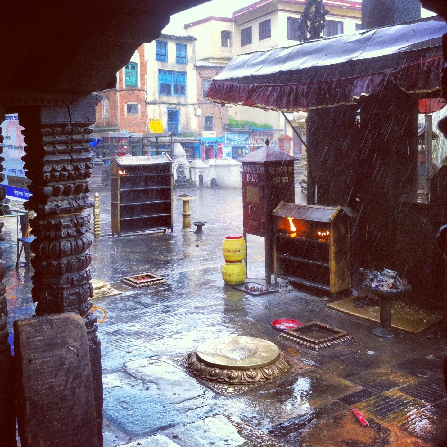 La lluvia persiste, intermitente. Harto de sudar y ya mojado por completo, decido imitar a nuestro guía, que en ese momento me adelanta para ponerse en cabeza. Sudeep camina desprovisto de ropa de abrigo o impermeable, aceptando desde el principio que ni una cosa ni la otra tienen sentido ahora. Por el camino nos cruzamos con grupos de niños que juegan, subiendo y bajando los resbaladizos peldaños a la carrera. Uno luce una gastada camiseta con los colores de la equipación del Barça de esta última temporada, lo que consigue arrancarme una sonrisa de reconocimiento.